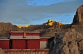 因处于土林的峡谷中,红墙与土林相映生辉又别具一番壮丽。每每有人摇动经筒,沿土林间的小道绕托林寺转经。此番情景也让人生出许多感慨。